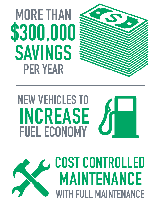 Through Enterprise’s comprehensive approach, LACDC was able to right size their fleet from 125 to 84, leverage daily rentals as needed through Enterprise’s infrastructure and implement a Full Maintenance program to alleviate the in-house maintenance department which also freed up cash flow. Through fixed and budgeted maintenance programs unexpected maintenance expenses were limited. Additionally, the physical damage program lowered subrogation and body repair cost. LACDC was able to streamline their capital budget process to account for a vehicle replacement plan, move from cash purchase of vehicles to an open-ended lease program and replace 60 of the oldest vehicles in Year 1. By utilizing Enterprise’s resale process, the commission anticipates to maximize resale value by 10%.