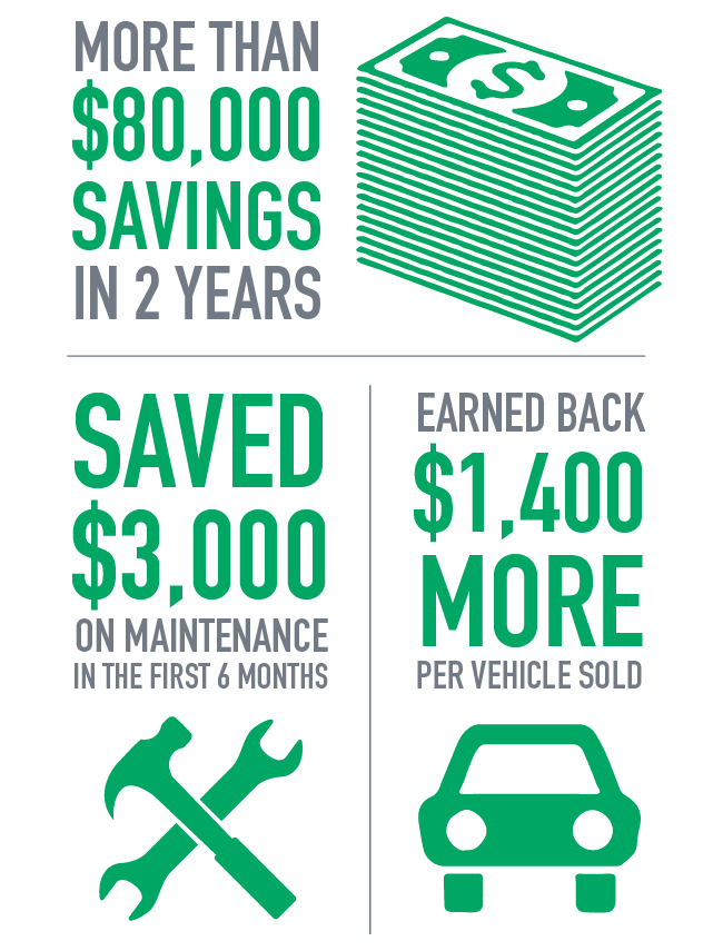 In the first six months, the St. Louis Board of Education saved $3,000 through the Maintenance Management program. Within the first two years, the district had saved more than $80,000 in acquisition costs for its newer, more efficient fleet. When older vehicles were remarketed by Enterprise, the district received around $1,400 above market average per vehicle.