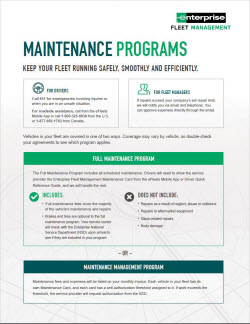 The Full Maintenance Program includes all scheduled maintenance. Drivers will need to show the service provider the Enterprise Fleet Management Maintenance Card from the eFleets Mobile App or on the back of the Driver Quick Reference Guide) and we will handle the rest.